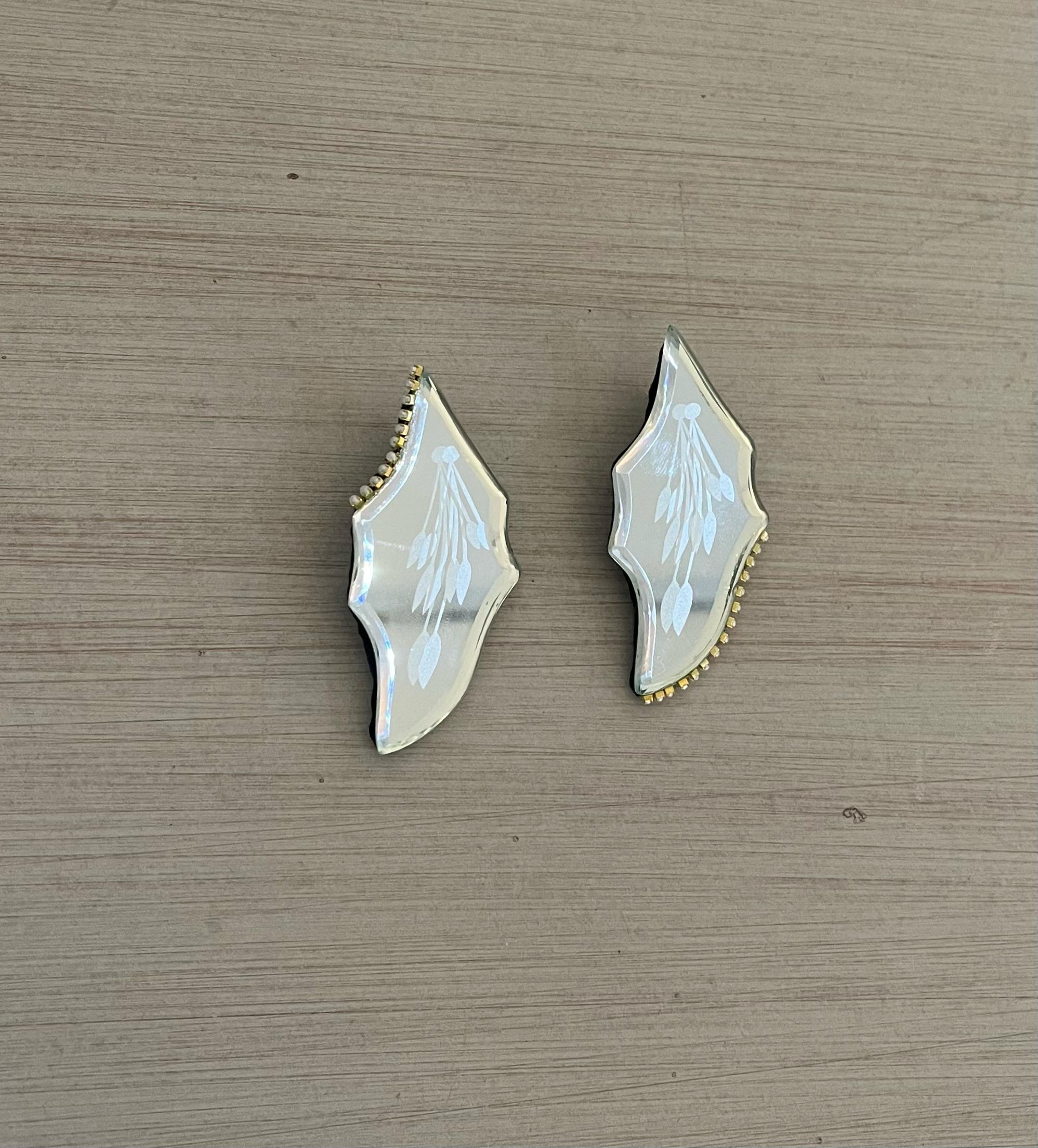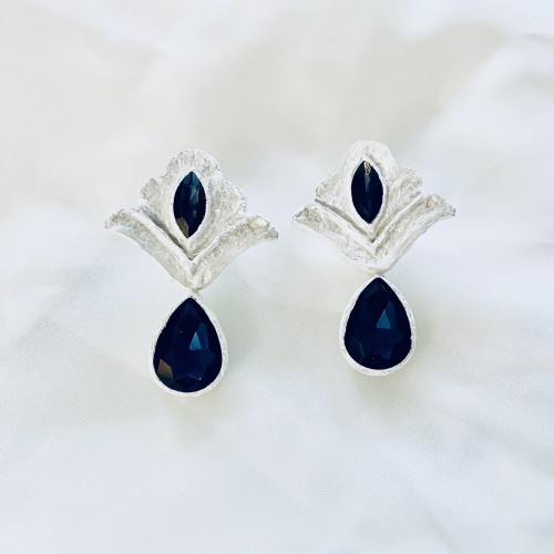 گوشواره نقره طرح گل صدف لوزی کد Lida9