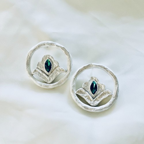 گوشواره نقره طرح گل صدف گرد کد Lida8